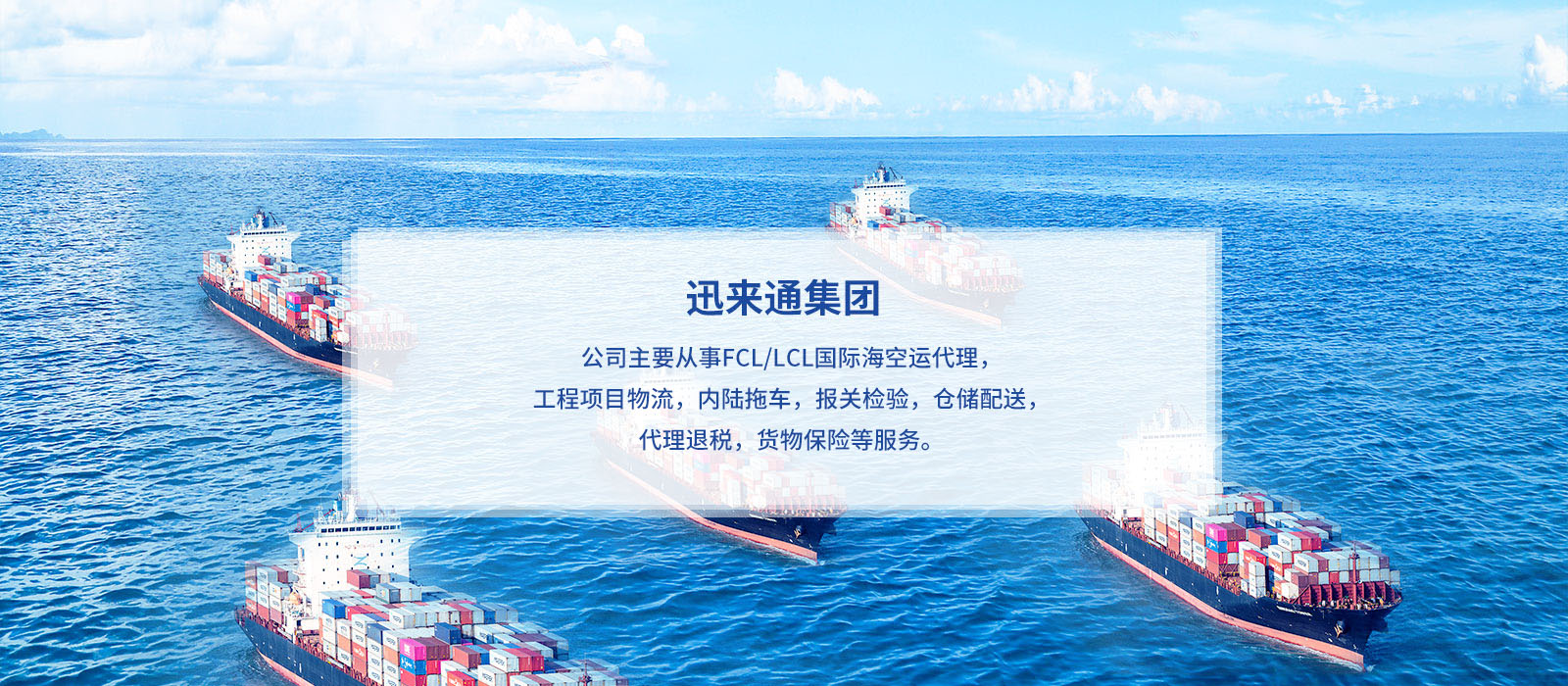 “海運”是迅來通的主營業務之一。 公司多年來一直致力于海運集裝箱進出口業務,與多家船公司建立了良好的戰(zhàn)略合作伙伴關系,并與世界各大港口代理及國內主要城市代理建立了互助合作伙伴關系。 經過多年的發(fā)展,公..